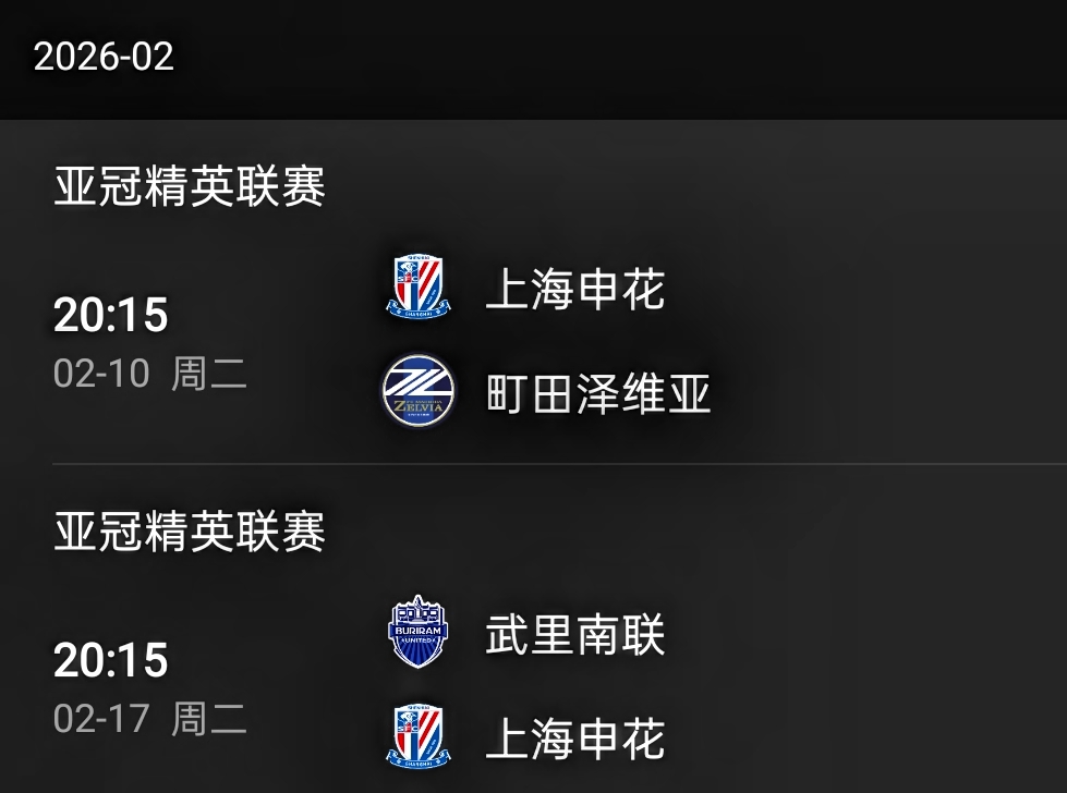 上海申花最后两轮赛程本年度亚冠精英联赛的比赛已经全部结束,最后的两轮比赛要在明年2月份进行,上海申花还剩下一个主场和一个客场,其中主场对阵的是町田泽维亚,而客场的对手则是武里南联。