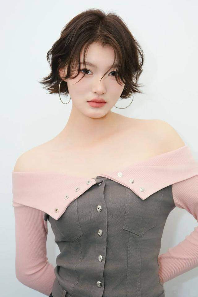 ✅ 短发干净利落,搭配八字刘海能修饰脸型,显得脸部更加小巧精致。这种发型适合多种场合,无论是上班还是休闲聚会都很合适 ✅ 整体造型清新自然,适合喜欢简约风格的女生。通过纹理烫增加发丝的弹性和层次感,让发型更加有型