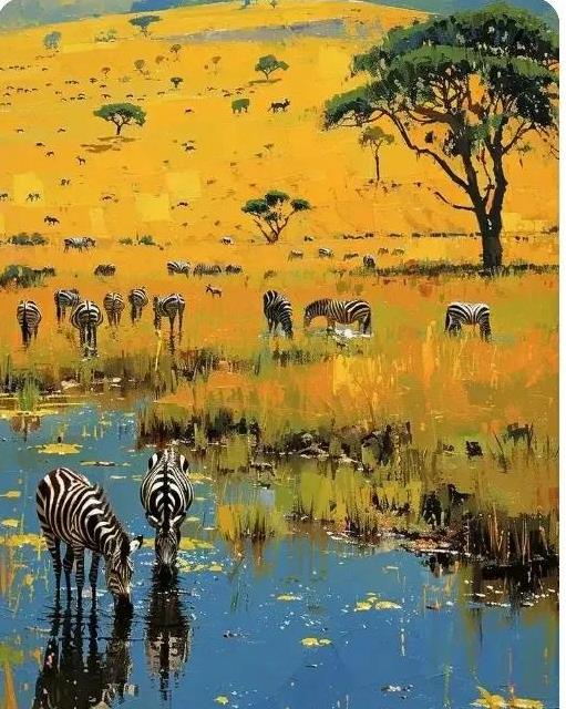 然后,他们踏上了非洲的土地。在特别大特别广阔的草原上,一群一群的野生动物在搬家。斑马、角马、长颈鹿,它们排着长长的队伍,朝着远方走。老两口坐在吉普车上,离这些动物特别近地看着,心里又紧张又激动。他们还和当地的部落居民一起生活了几天,跟着学他们的手工艺,听他们讲特别古老的故事。