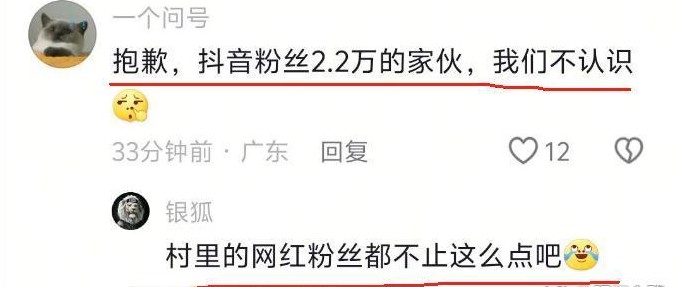 同样买的是经济舱,凭什么艺人就能优先插队?事件一度引发网友的关注和热议。有网友发表了:“抱歉,抖音粉丝才2.2万,我们不认识!”对于他们的插队嚣张行为,还有网友讽刺道:“村里的网红粉丝都不止这么点吧!”