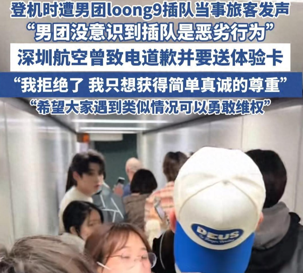 近日,一则关于“某男团登机插队”的事件在网上引发热议。乘客们原本有序地排成两列等待登机,但突然出现一队“男团”直接插队,导致场面一片混乱,难道明星就能享有特权吗?