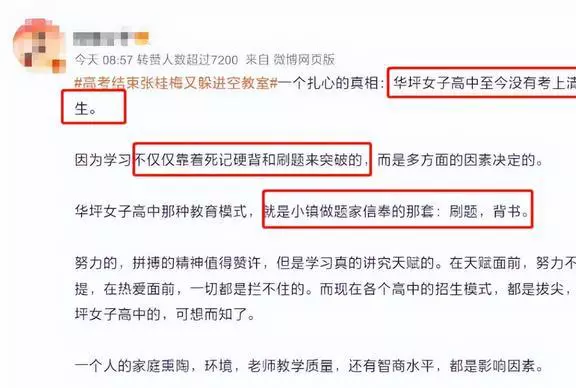 “小镇做题家”被他用来讽刺张桂梅老师,并称这种教育方式会导致小镇做题家会越来越难。