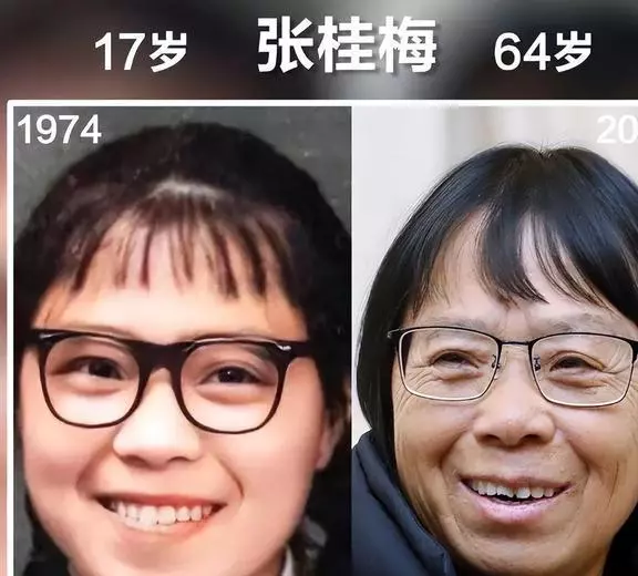 看看17岁的张桂梅和现在64岁张桂梅的照片对比,流失的胶原蛋白、流失的青春,唯一不变的还是眼睛里的光和心中燃烧的火焰。