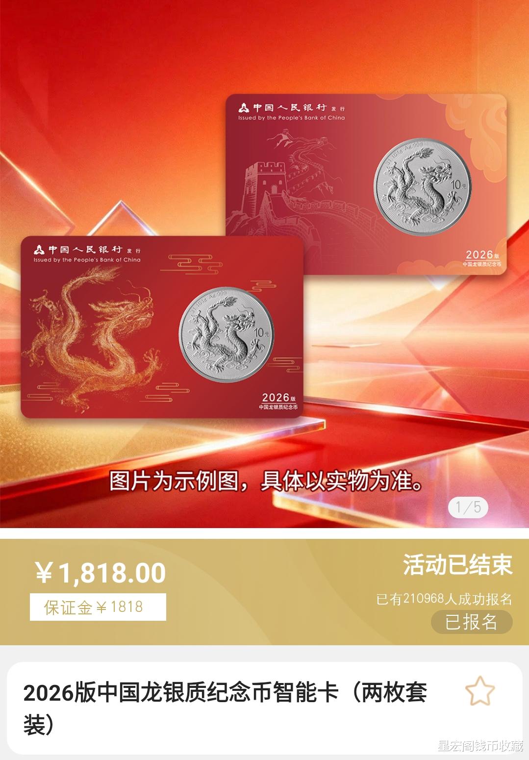 2026版中国龙银币智能卡金币云商今天预约抽签也已经结束参与人数也达到了210,968人,这个参与人数对比2026版中国龙银币封装纪念版连10%都不到。2026版中国龙银币封装纪念版最终参与人数也超过了337万人以上,中签率也不到1%。