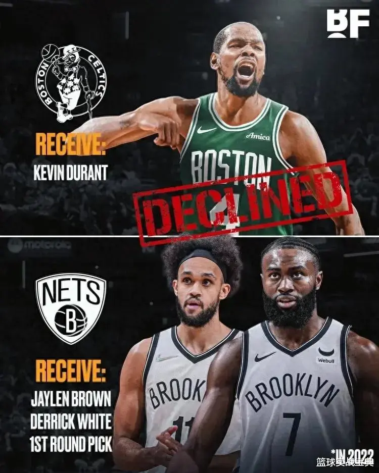 值得一提的是,据爆料王Shams透露杜兰特未被交易到太阳之前,本来是要把天赋带到波士顿,当时绿凯报价杰伦布朗+怀特+一个首轮签,然而被篮网无情拒绝。