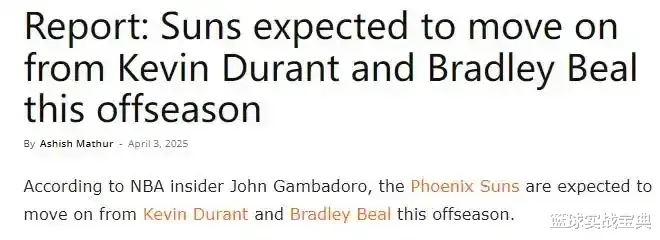 美媒:预计太阳今夏休赛期交易杜兰特和比尔。