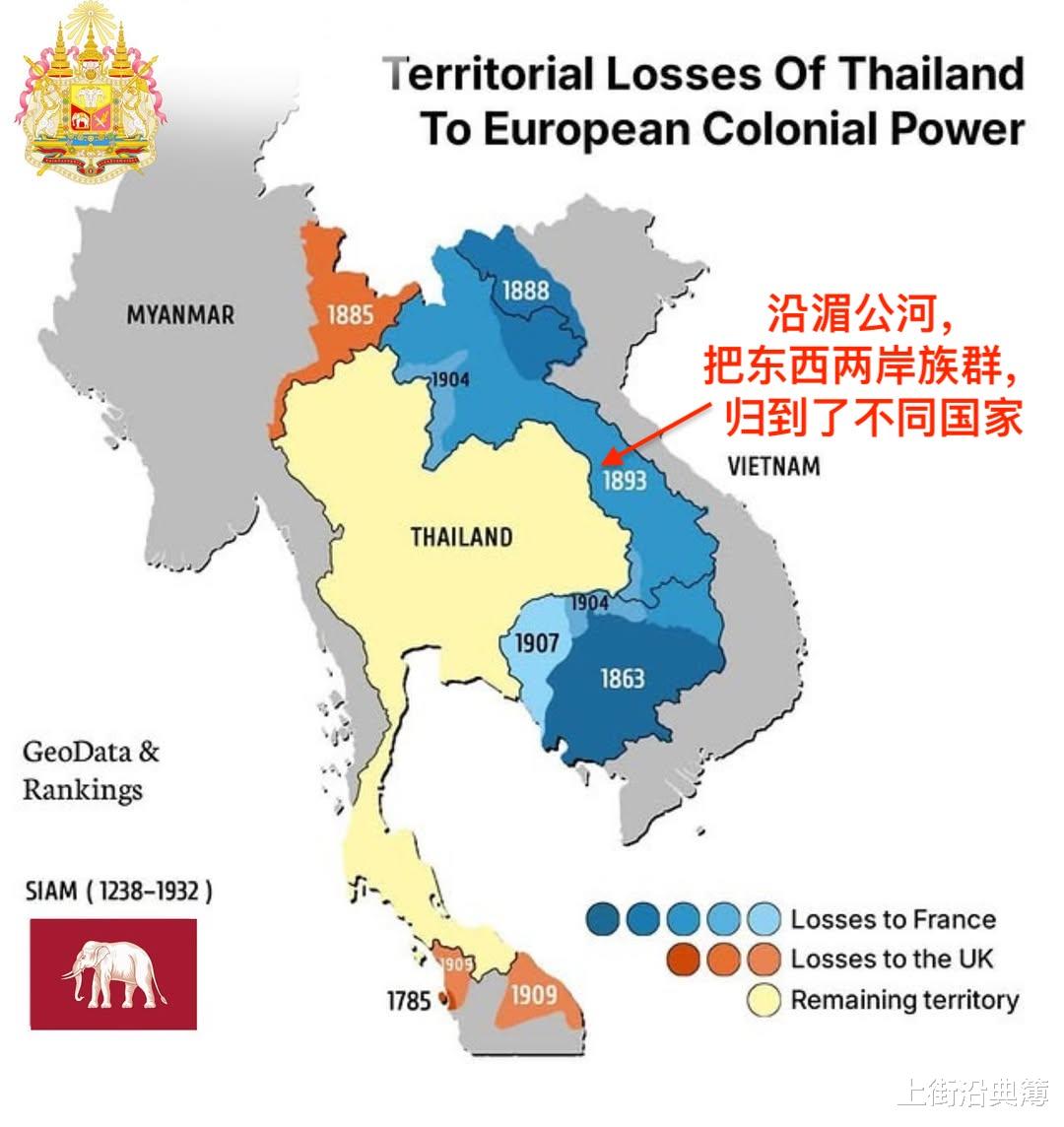 一份条约,划归两边1893年,法国靠着一份条约在地图上画出一条线,这条线是以湄公河河道作为标准的。湄公河以东归属于法属印支,以西归属于暹罗。这条线从来就不是佬族族群的文化边界,也从来就不是历史上真实存在的王朝边界,它仅仅是欧洲殖民者跟暹罗在谈判桌上妥协的结果。