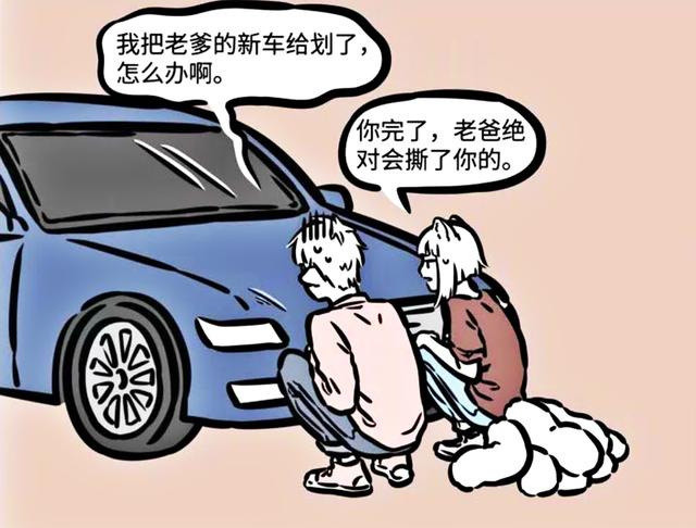 从九月爸爸的一系列举动中,我们可以看出他对自己心爱的新汽车是多么的关心。可是,十一月一不小心就把车子的车身给擦破了。