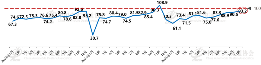 数据也印证了车市热度。12月2日,中国汽车流通协会发布最新“汽车消费指数”,11月为93.2,高于10月,预计12月汽车市场表现将优于11月。