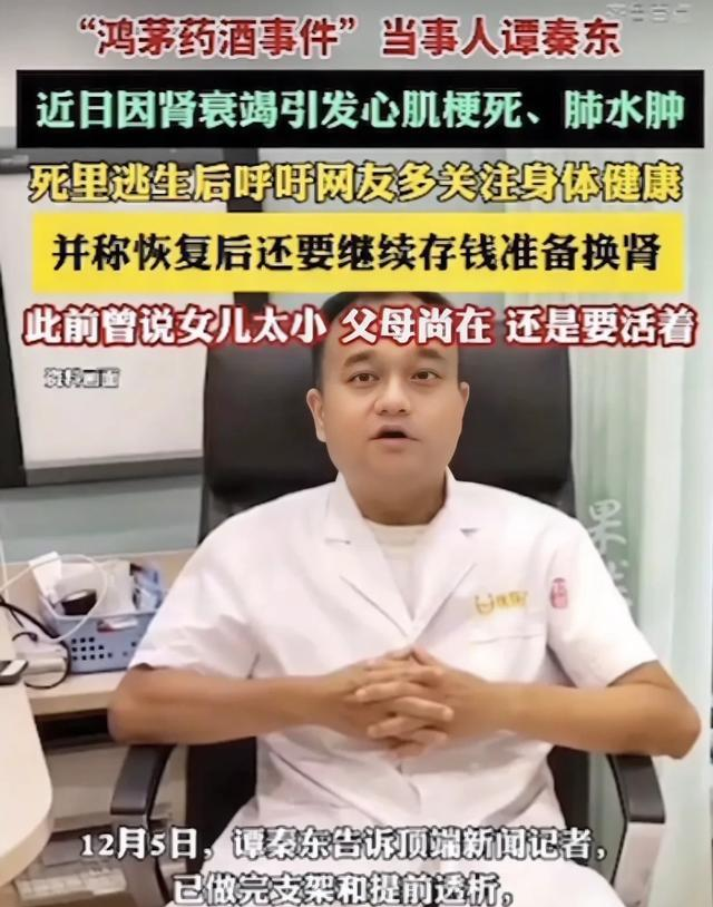 谭秦东,近日,因肾衰竭引发心肌梗死,谭秦东险些命丧病床。然而,这位曾经站在风口浪尖的人物,此刻的回应却是:“躲过一劫,活着挺好。”