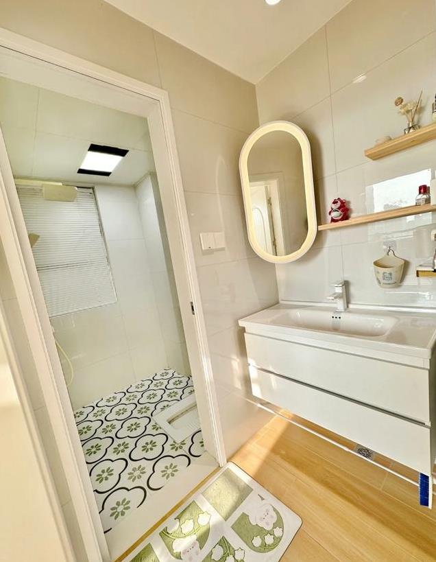 面积不是特别大,还是做了干湿分离的设计,干区洗漱台的宽度也只有1m,但满足自己和家人平时的洗漱需求还是完全足够的。
