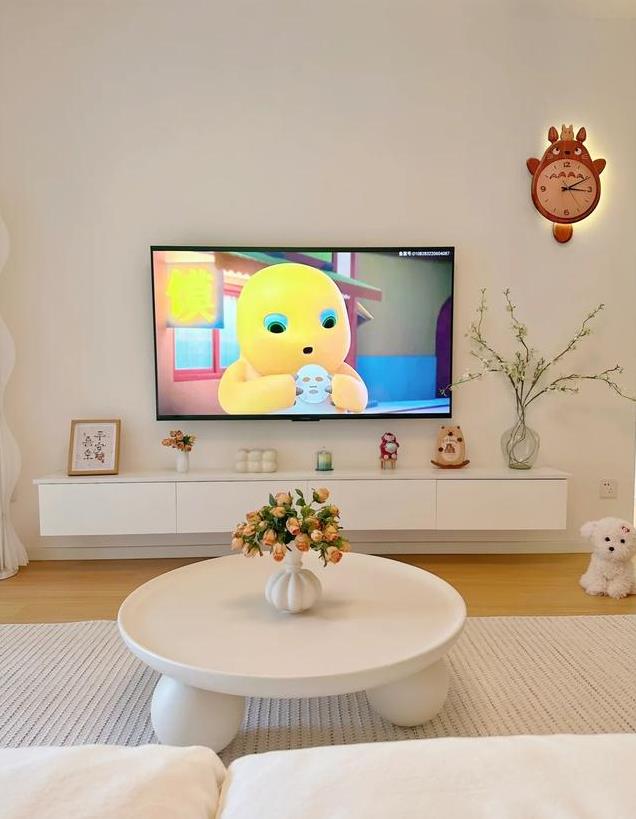 茶几餐边柜都是烤漆的,好打理有质感,造型也实用经典耐看。茶几不要选带收纳功能的,就选这种简单的样式,避免往茶几里头塞东西,更容易让客厅的整体保持干净整洁。