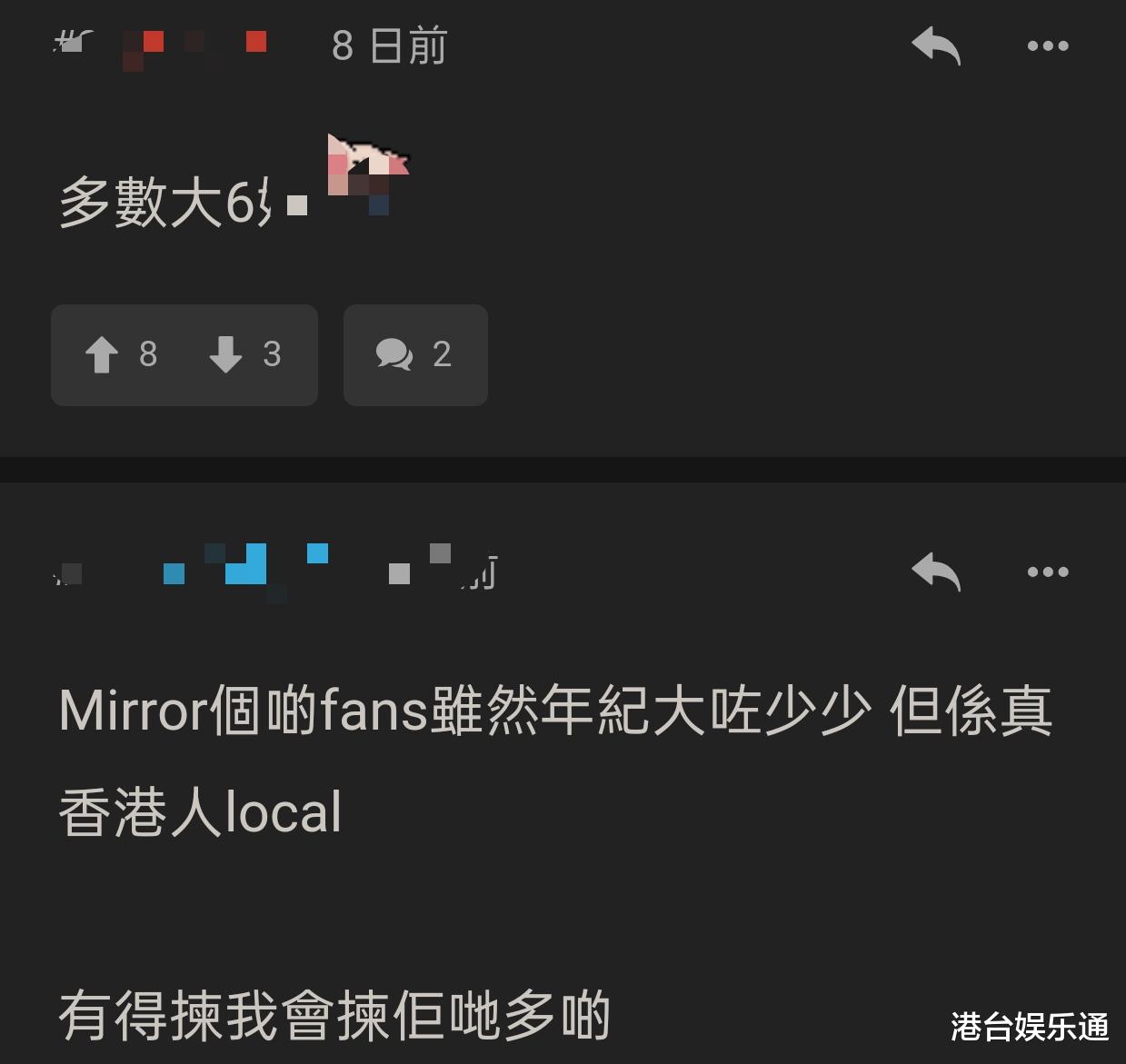较为支持MIRROR的网友则表示,外界之所以认为只有师奶阿婶才喜欢MIRROR,是被部分媒体和黑粉误导了,实际上MIRROR的粉丝比谢霆锋的粉丝更年轻。