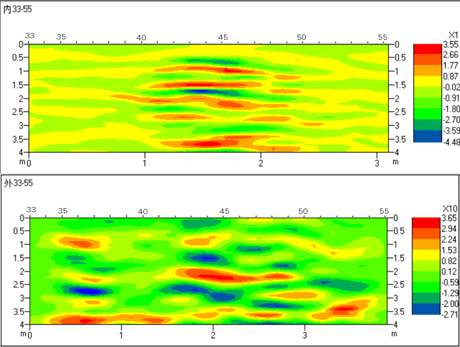 Cscan声波散射技术对风电混凝土进行全面筛查,快速定位多处疑似缺陷区域。基于检测数据对混凝土缺陷的揭示与定位,项目团队开展了针对性修复。