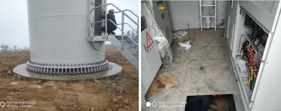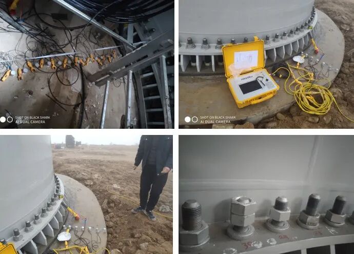 某风电在施工灌浆时恰逢下雨,且安装塔架紧固锚杆的螺丝时,右侧的部分锚杆(50多根)出现了向上的情况(最大提升2cm)。推测可能是右侧底部的混凝土不密实,锚杆受力,混凝土被压缩,锚盘上升。