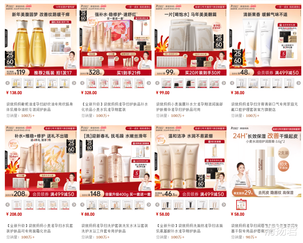 公开资料显示,袋鼠妈妈品牌自2012年成立以来,始终以孕产护肤为切入点,蝉联12年天猫双11孕产护肤类目销量冠军。2023年,其全渠道销售额达15亿元,累计服务超6000万母婴用户。同年,深耕孕产母婴赛道十余年的袋鼠妈妈正式推出青少年护肤及洗护系列产品,开启全成长周期护理布局。