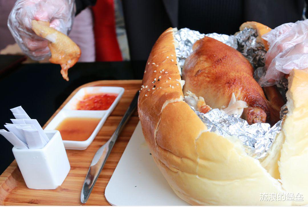 第二种面包鸡,外面是酥皮的面包,然后包裹着一层锡纸,最里面是整只鸡,其实就是一种烤鸡,大家吃的时候会觉得味道上有什么不一样,但其实没差,价格也不便宜,所以很快便没有市场,在当时可是需要预定的存在!