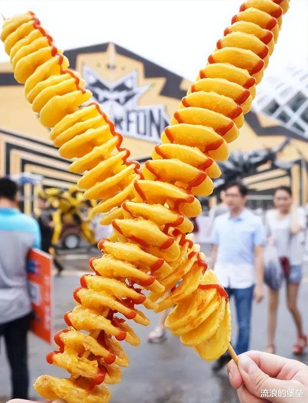 第五种薯塔,现在也有卖的小摊,但是比起当时真的少之又少,当时是随处可见,人手一串也不夸张,但是吃过的人几乎不会买第二次,因为土豆会很快的凉掉回生,口感和味道都不好了, 所以不是几个人吃一串,一般都不会再买了!