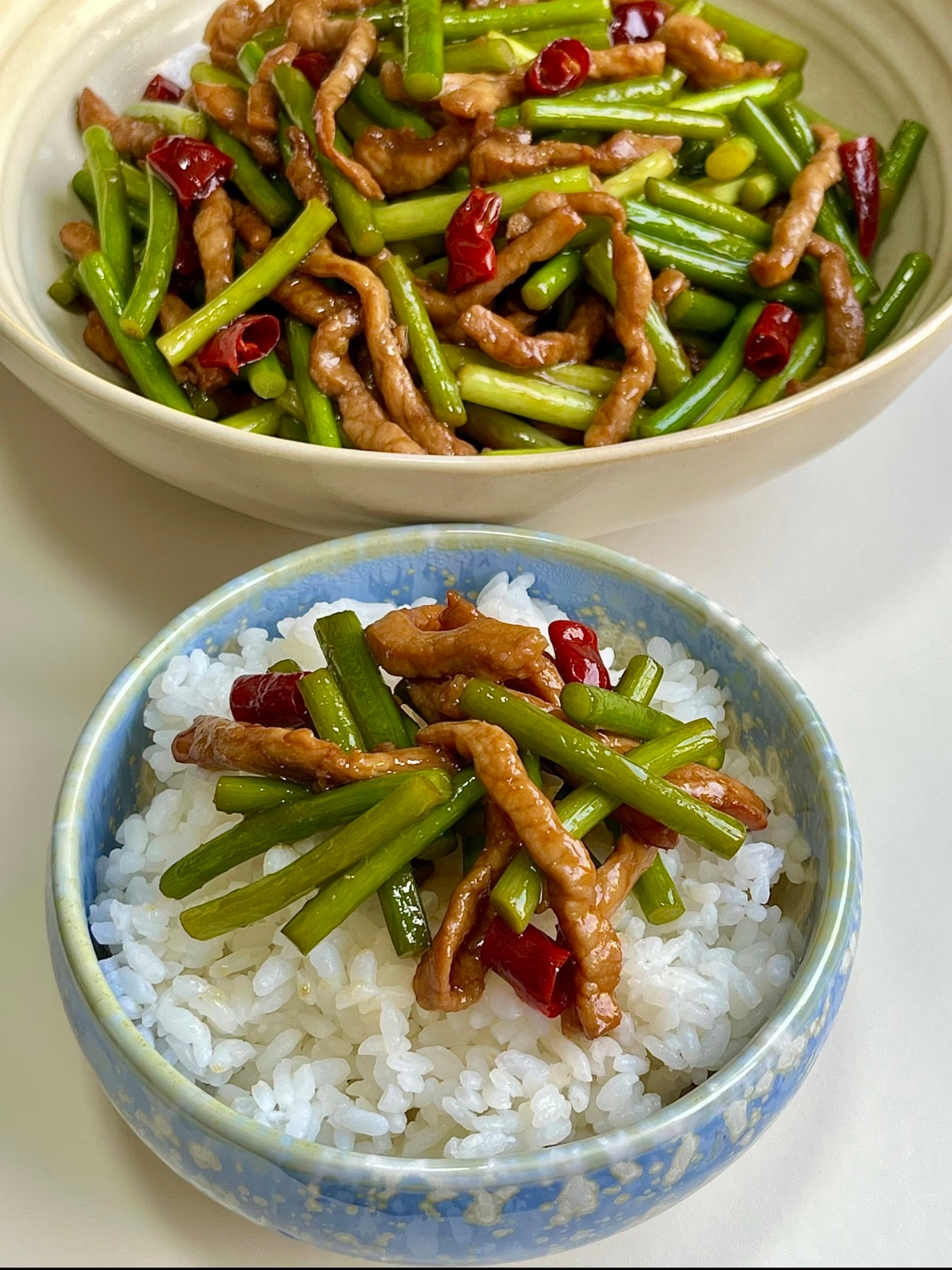 蒜苔炒肉丝:一人食的鲜香慰籍