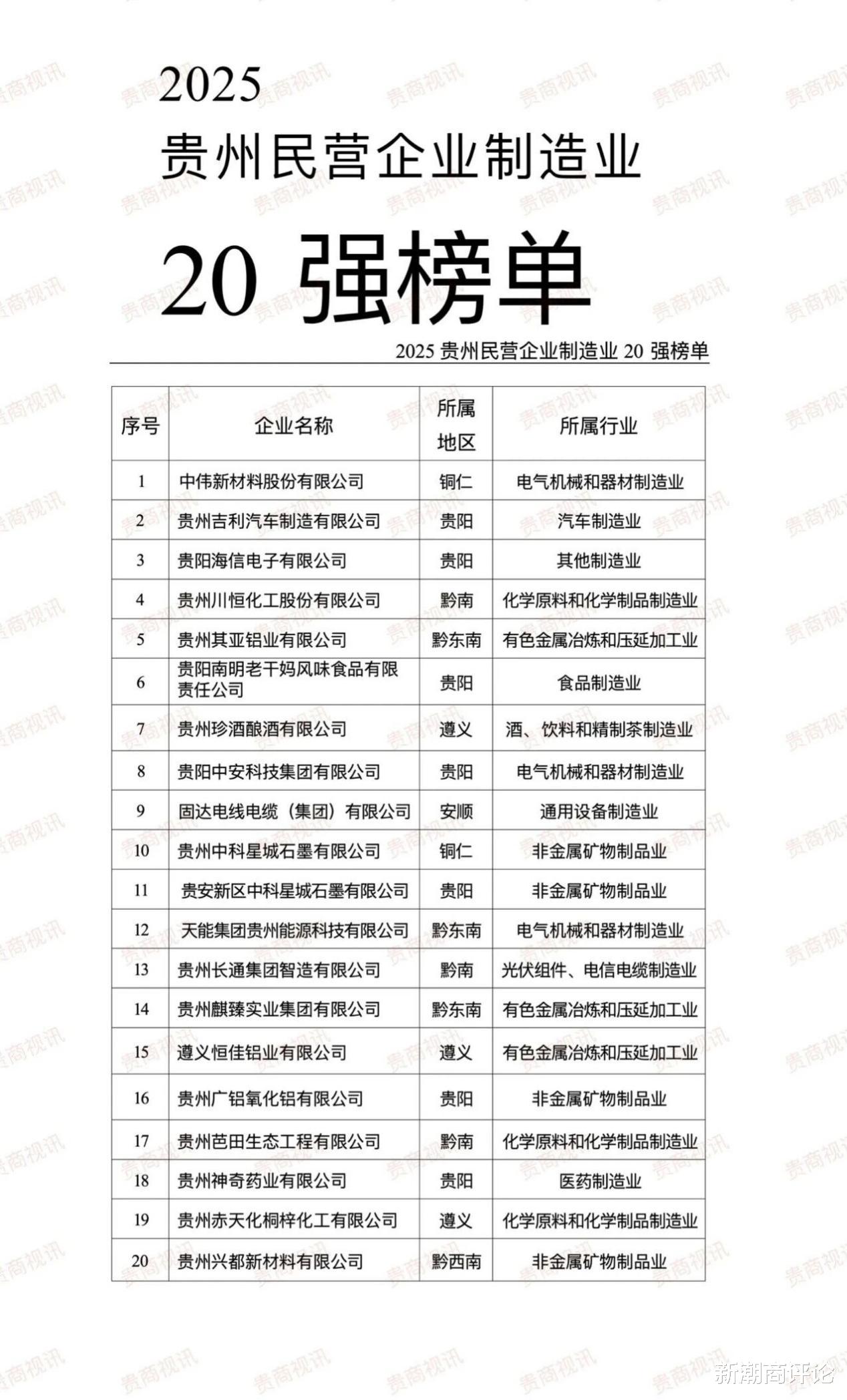 12月24日,贵州省工商联发布“2025贵州民营企业制造业20强”。今年榜单入围门槛为22.33亿元,同比提升1.27%;营业收入总额达到1190.13亿元,同比增长8.76%。