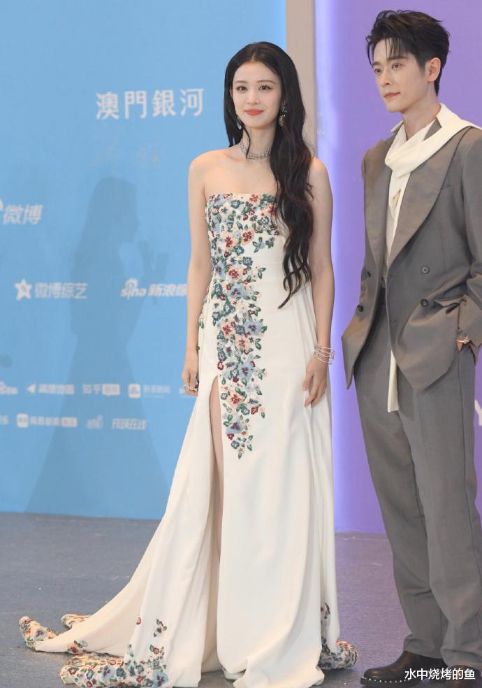 王楚然身着花卉刺绣点缀抹胸开叉裙亮相红毯,如珍珠美人一般,大气温婉,气场十足,光彩夺目,越来越有大花的风范。