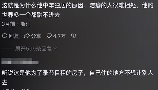 更有网友在评论区发文说:他这个房子是专门为了录制节目而租的房子,自己真正住的地方不想让别人过去。