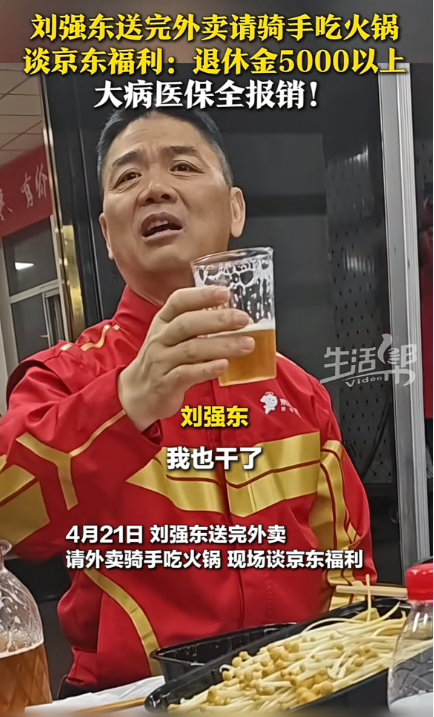 2025 年 4 月 21 日,京东创始人刘强东在北京亲自参与外卖配送后,邀请了数十位外卖骑手一起吃海底捞火锅。