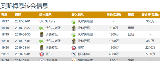 现年25岁的奥斯梅恩身高1.88米,司职中锋,是一位右脚球员。他拥有出色的身体素质和得分能力,尤其擅长在禁区内制造威胁。德转身价高达7500万欧元,他与那不勒斯的合同至2026年,但合同中包含7500万欧元的解约金条款,这为曼联的引援提供了可能性。