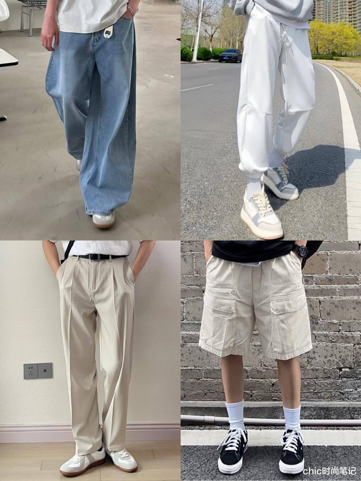 2.下装类:束脚/直筒运动裤、直筒/阔腿牛仔裤、休闲西裤、工装短裤,基本上都是以阔腿、宽松为主。
