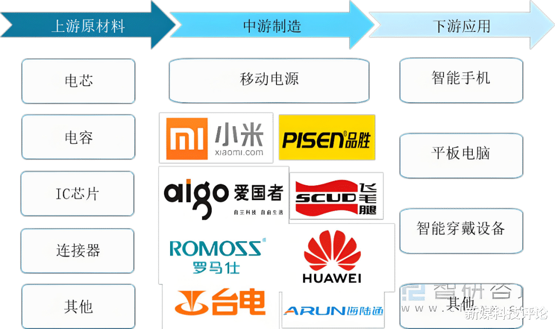 充电宝行业主要分为上游原材料(电芯、电容、外壳与结构件等),中游制造,以及下游品牌产品。其中,电芯供应商主要包括安普瑞斯、宁德新能源等几家头部企业。