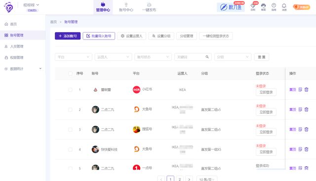 在账号管理当中,蚁小二甚至还可以批量导入账号,如果是普通用户的话,可以管理五个账号,基本足够日常的使用了。除此之外,我们还可以进行分组,从而让我们更好的进行管理。像一键检测登录状态这一点,必须为其点个赞。