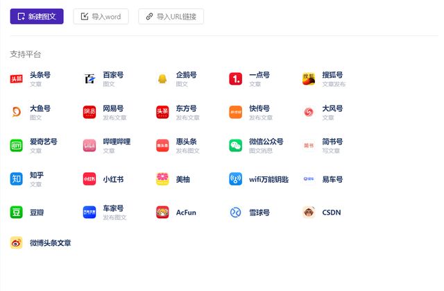 值得一提的是,在发布的时候,我们可以新建图文、导入Word以及导入URL链接,这个就看个人的使用方式了,像我就比较喜欢导入URL链接,感觉这样的速度更快一些。值得一提的是,我们在发布的过程当中,我们还可以对平台的账号进行单独的设置,比如标题、商品卡这一类。