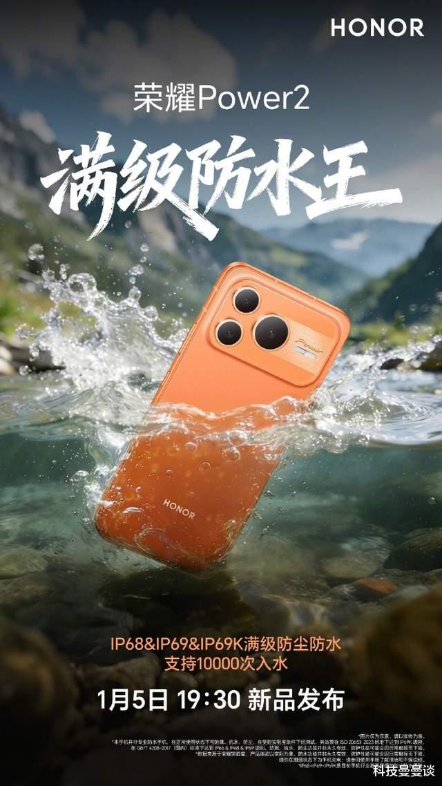 在防护层面,荣耀Power2引入了IP68&IP69&IP69K满级防尘防水认证,实现行业领先的耐用性,成为满级防水王,并将中端机的耐用标准提升至全新维度,无论是高温高压水枪冲刷还是户外涉水场景,都能提供极具稀缺性的可靠保障,精准直击户外用户痛点。