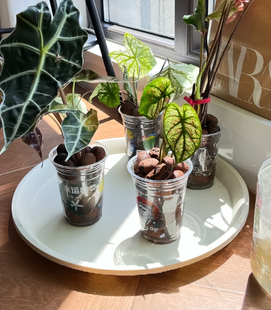 我平时喜欢养一些植物,我妈说,买什么花盆啊,这种奶茶杯子不刚好吗!