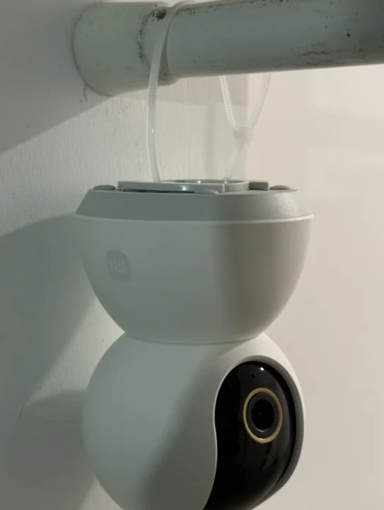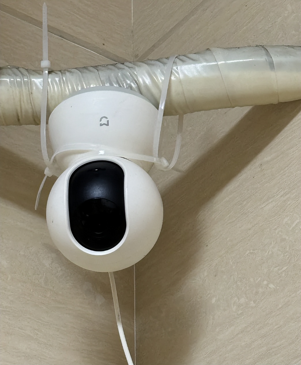 用几根扎带把监控固定好,然后挂在空调管道上就行了,用起来特别方便。