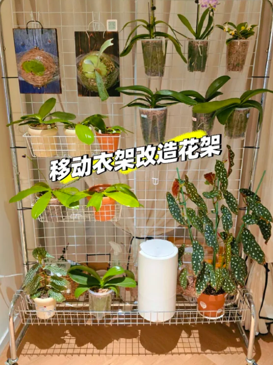 家里要是有这种置物架,想要用来养花的话,其实可以用扎带把花花草草固定在置物架上面,颜值很高,还不用担心掉下来。