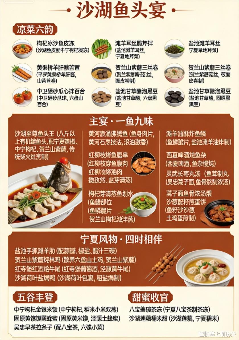 而“沙湖鱼头宴”,就是这张地图上最亮眼的那一片湖泊,汇聚了宁夏风味的千般滋味,万种风情。