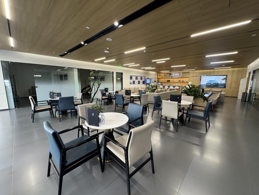 试驾结束回到店里,我顺便逛了逛与展厅相连的客户休息区。这里氛围更显闲适,大厅里摆放着舒适的沙发,旁边还有一张标准的台球桌,往里走则设有独立的VIP休息室。看得出,这里是为了让客户能从容地休息或等待,而非枯燥地打发时间。