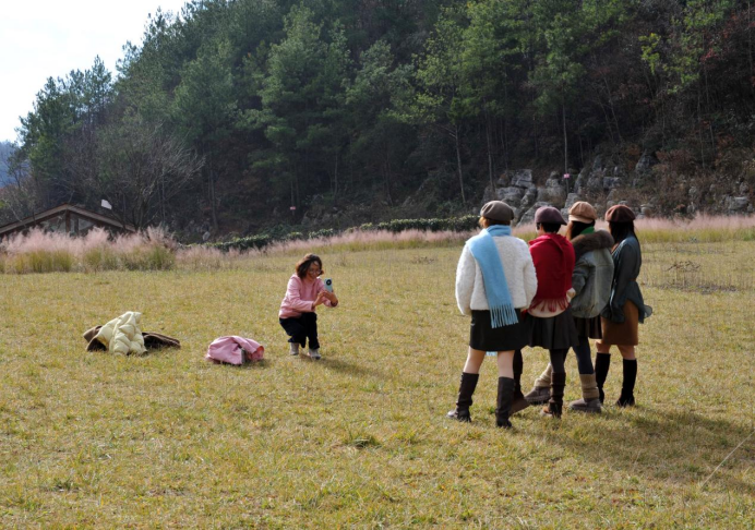 草坪上,几名巫山姑娘先于我们在草坪上摆出pose拍照了。见我们也是出来游玩的,便笑着邀我老婆帮忙拍合影,末了还特意拉老婆一同入镜。