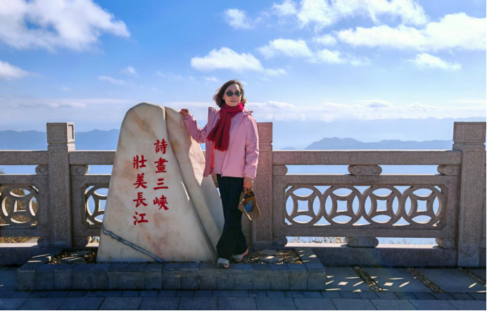 抵达巫山机场时,太阳终于冲破云层,天空湛蓝如洗,云朵轻盈妩媚。站在山巅极目远眺,远山如黛,长江似一条碧绿玉带在群山之间萦绕盘旋,恍若缥缈仙境。