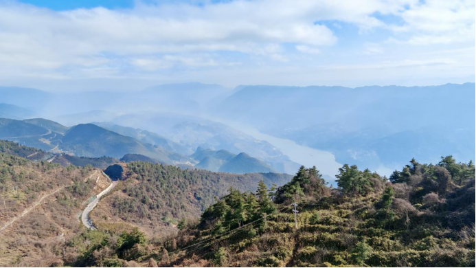 车行至半山腰,一座金色A字形牌坊赫然横跨公路,“三峡之巅”四个大字遒劲有力,道旁已建有规整的停车场。经打听得知,此处是白帝镇石庙村坳口,既是村民们的议事聚集地,又是游客临时休憩的中转站,相关配套设施也正在逐步完善。