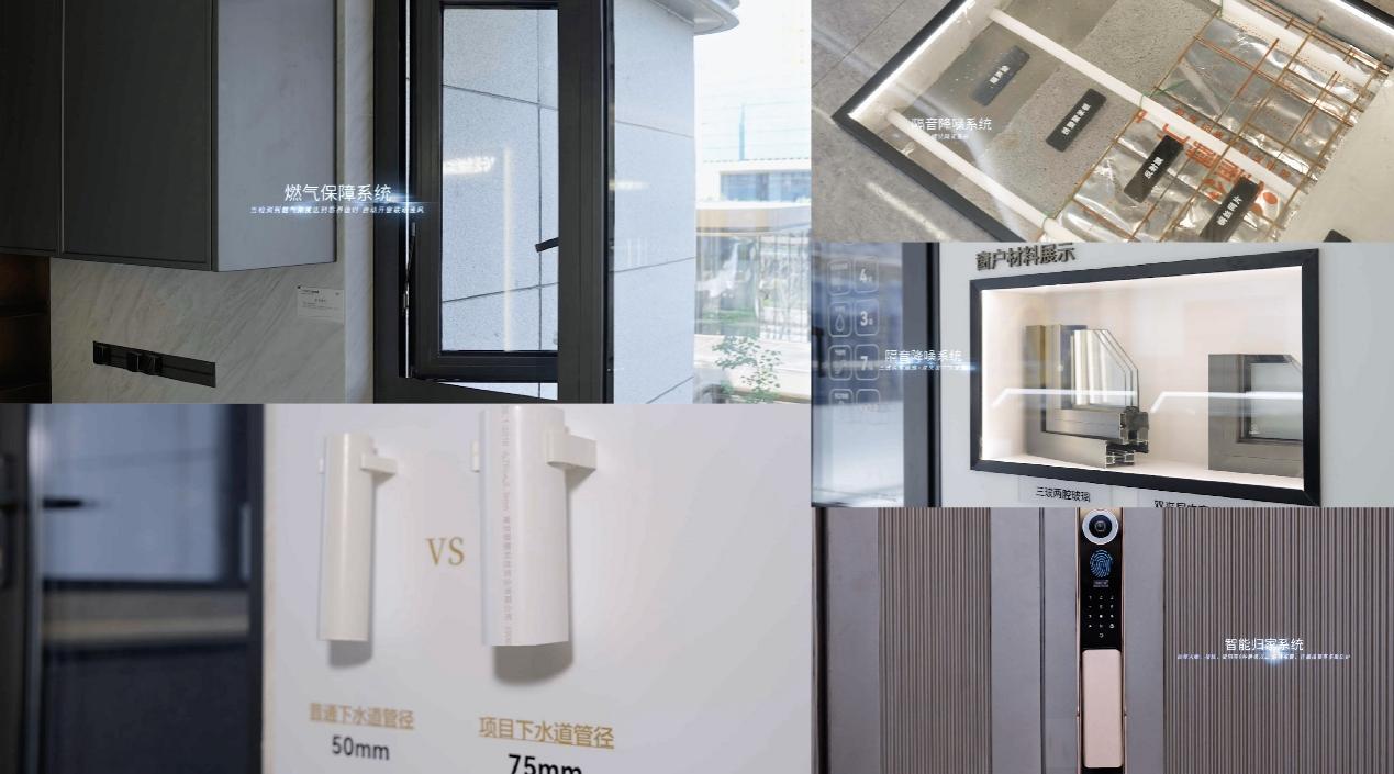 此外,项目还配备智能防撬门锁、防燃气泄漏装置,户内卧室及客餐厅采用三玻两腔隔声玻璃(G1#G2#G3#G5# 南向户内窗玻璃采用四玻两腔),同时搭配隔声保温楼板、卫生间HDPE静音管材,以解决居家安防、燃气泄漏、噪音干扰等居住痛点。