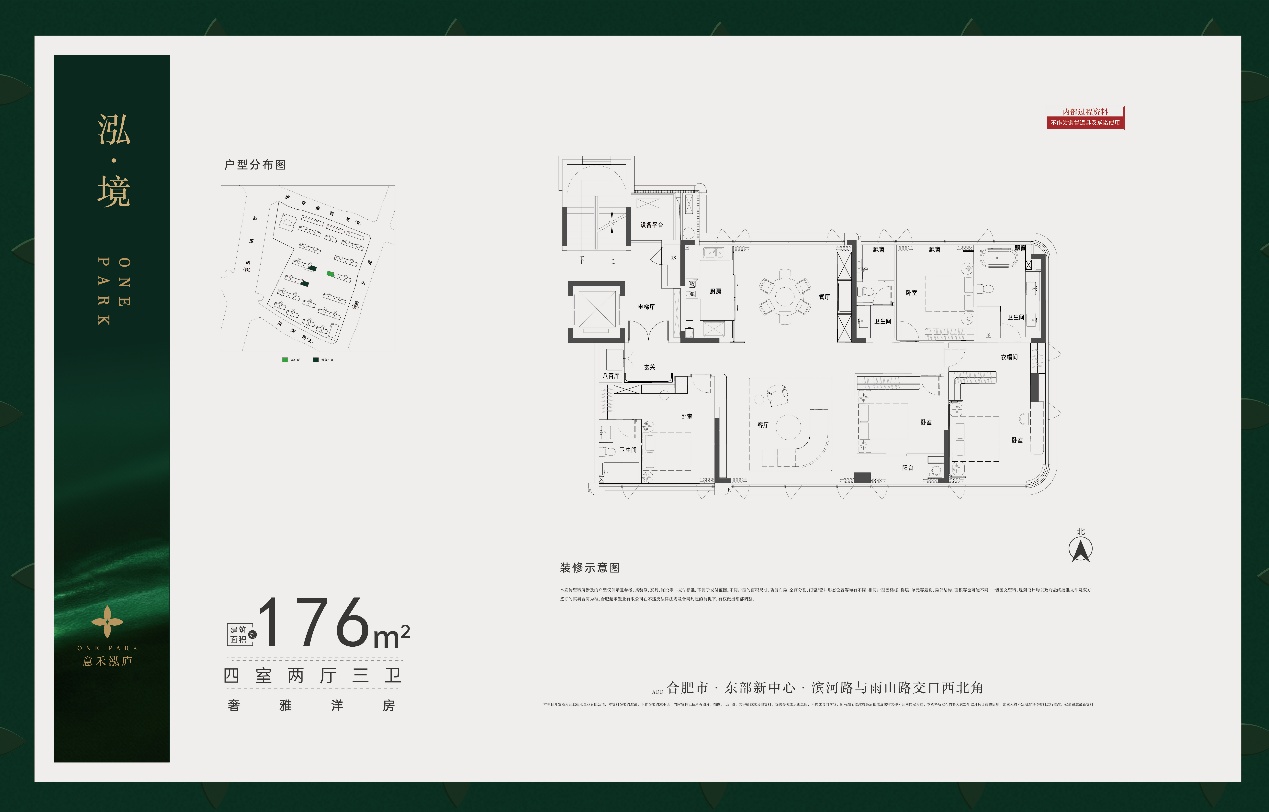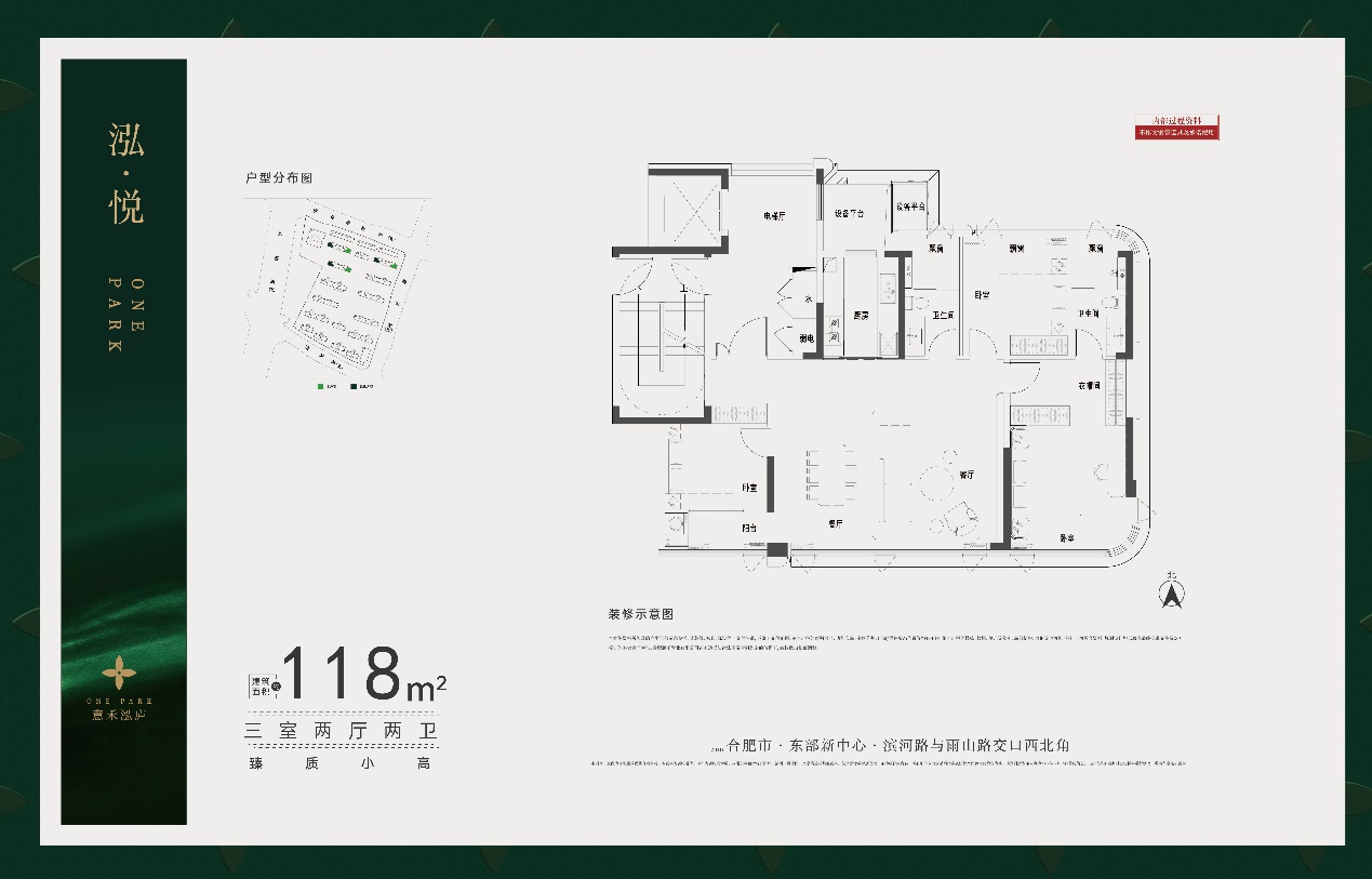 意禾泓庐位于东部新中心的滨河路与雨山路交口,容积率约1.5,规划12栋洋房+4栋小高,户型约118到176平。