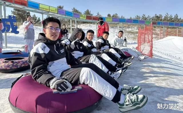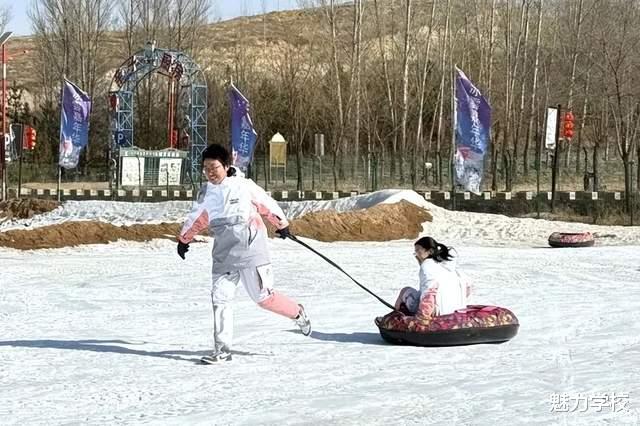 同学们有序排队,依次坐上圆润的雪圈,在工作人员的协助下,顺着雪坡飞速滑下。大家在体验刺激与欢乐的同时,也学会了遵守秩序、相互谦让,在欢声笑语中增进了同窗情谊。