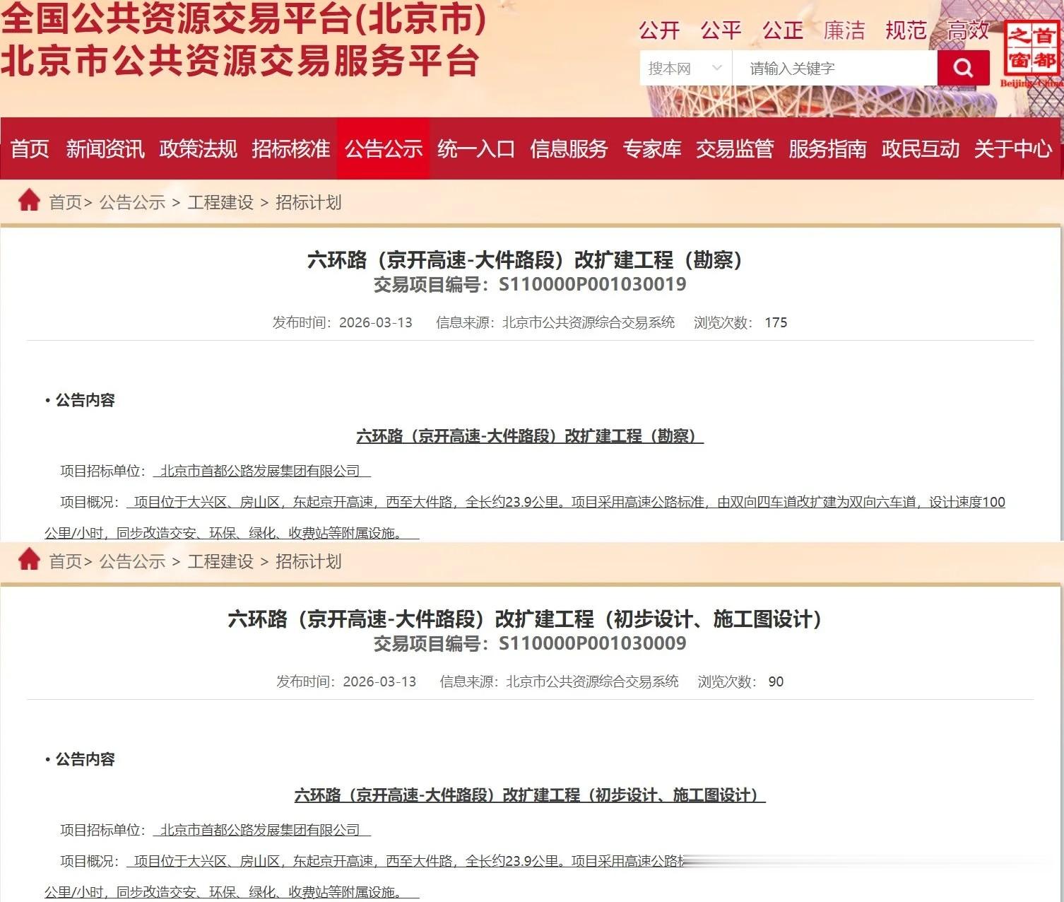 (1)北京南六环即将启动改扩建招标,设计时速将提高至100公里。