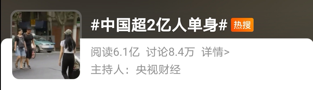 然而,有人欢喜就有人忧。超两亿人的单身数据,背后映射的是我国新生儿逐渐减少和人口结构逐渐老龄化的问题,这是一个值得整个社会担忧的问题。