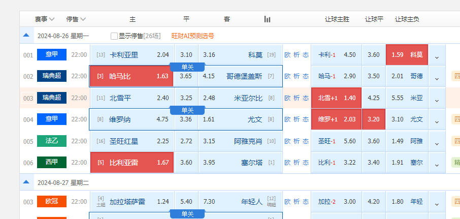 002 哈马比vs哥德堡盖斯,哈马比是瑞典超的传统强队实力自然毋庸置疑,特别是主场作战还是值得信赖的,哥德堡盖斯作为升班马本赛季整体表现确实也很不错,并且在俩队交手当中能并未处于劣势,所以下盘也不会缺乏追捧的空间,但在这样的一个情况下数据依然给到哈马比初开0.5目前看有到0.75的趋势,支持还是很坚挺那本场还是顺势看好哈马比直接拿下!方向:主胜,比分:2-1,3-1。