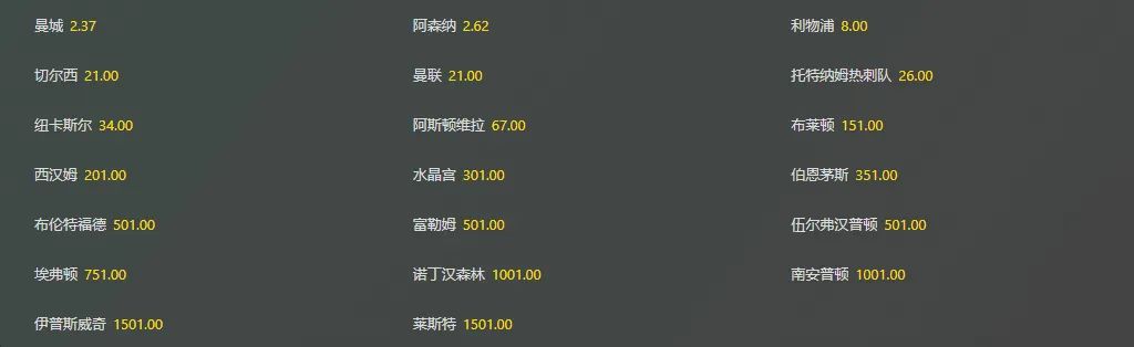 例行公事给出英国三机构和超算对英超冠军的态度,从中可以解读出不少信息,比如球队定位,这个信息的重要程度高于谁拿冠军。