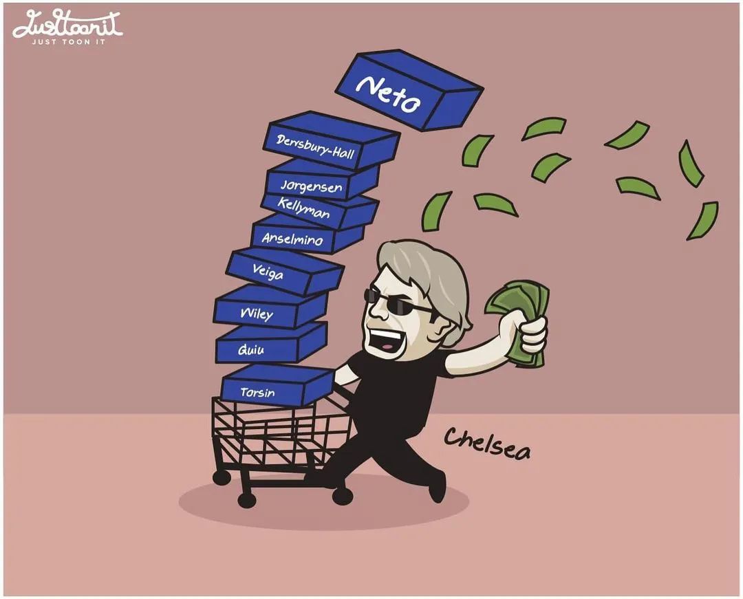 这不,又清空购物车买了一堆人,大名单已达到43人。43人什么概念,两支球队啊,落魄期的德比郡甚至凑不齐15人,这切尔西就接近他们的4倍。