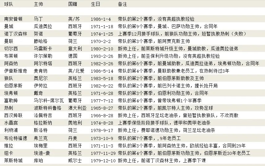 5支球队换帅,一半属于被动换帅,这很正常。英超是世界顶尖,不仅上赛季的赛季最佳阵容一个都没离队,主帅也差不多继续原地上班不挪窝。